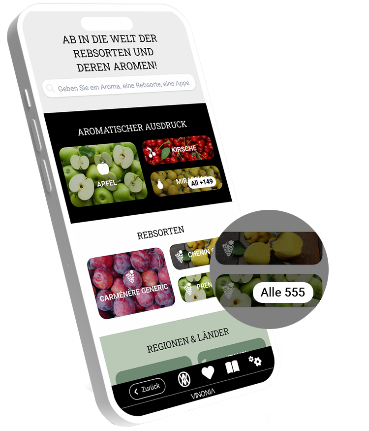 Was VINONIA als Wein App besonders auszeichnet: Nahezu alle Elemente sind anklickbar und miteinander vernetzt. Sie können von einem Aroma zu einer Rebsorte springen, dann zu einer Appellation wechseln, eine andere Rebsorte entdecken, deren bevorzugtes Klima erkunden und wieder zu einer neuen Produktionsregion gelangen. Diese intuitive Vernetzung macht jede Nutzung zu einer spannenden Entdeckungsreise.